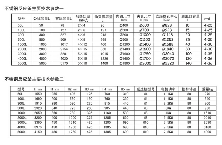 電加熱型,夾套型,外半管型,內盤管型,容積為0.01m3~45m3