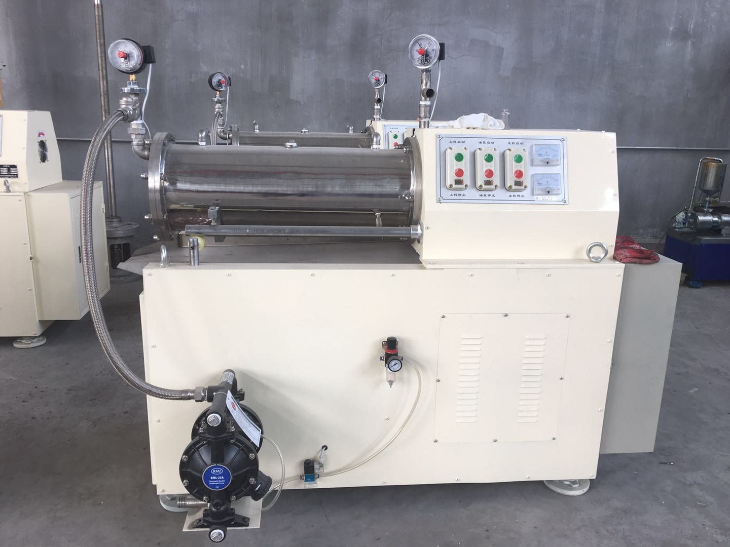 配有外筒移動拆裝支架,拆裝、維修十分方便。送料泵采用齒輪泵或氣動隔膜泵,送料大小調節方便,工作性能可靠。另外臥式砂磨機不用專門的安裝基礎,可以隨時根據需要變更安裝位置。